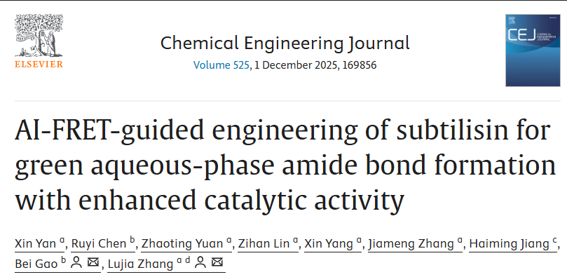 文章标题:“AI-FRET-guided engineering of subtilisin for green aqueous-phase amide bond formation with enhanced catalytic activity”